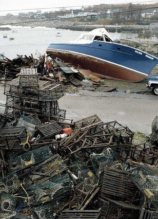 "Hundreds of homes and businesses were either knocked from their foundations or simply disappeared. Sea walls, boardwalks, bulkheads and piers were reduced to rubble over a wide area. Numerous small boats were sunk at their berths and thousands of lobster traps were destroyed. Flooding was extensive, invading homes and closing roads and airports."
